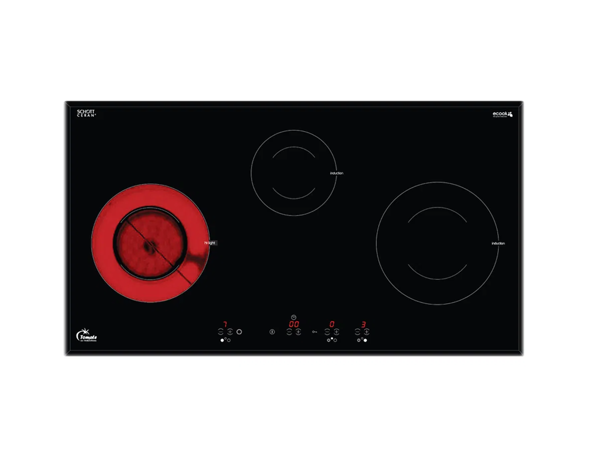 Bếp điện từ Tomate TOM 03IR được thiết kế với 2 vùng nấu từ và 1 vùng nấu điện trong đó lò nấu điện được chia thành nhiều vòng ra nhiệt giúp phù hợp với các kích thước đáy nồi khác nhau, tiện lợi sử dụng.