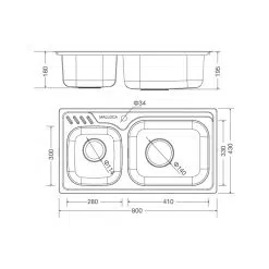 Chậu rửa chén inox 2 ngăn ROLAND B8248
