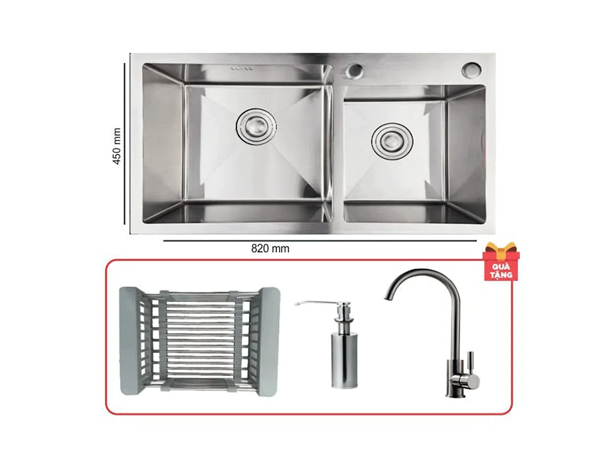 Thương hiệu Austar, Bảo hành 5 năm, Chất liêu: inox 304 dập, Chậu hộc đều: kích thước mỗi hộc 360 x 360mm, Thiết kế chống tràn, chống ồn, Thành chậu dày 1mm, Sản phẩm đi kèm bộ xả, quà tặng đính kèm: Bình xịt xà phòng trị giá 200.000đ, Khay rút đa năng trị giá 200.000đ, Vòi rửa chén lạnh Inox 304 trị giá 350.000đ.
