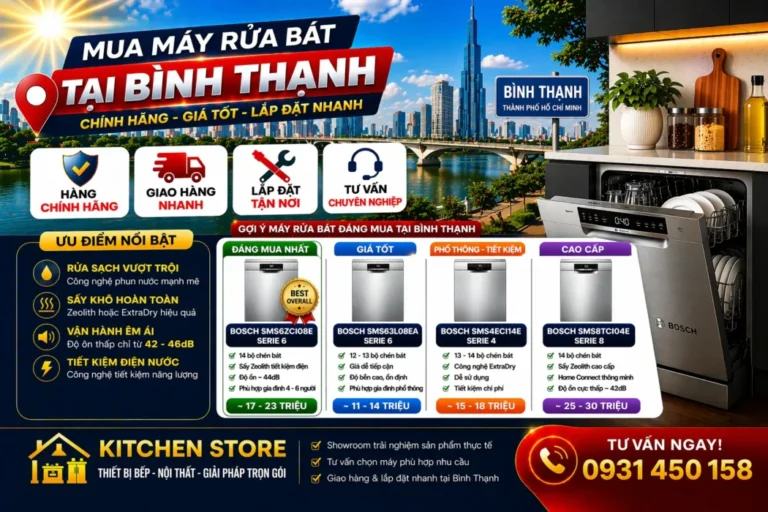 Khi chọn máy rửa bát tại Gò Vấp, bạn nên ưu tiên 3 yếu tố quan trọng: dung tích (12–14 bộ), độ ồn thấp (<45dB) và công nghệ sấy (Zeolith/ExtraDry) – đặc biệt phù hợp căn hộ và nhà phố khu đô thị đông dân.