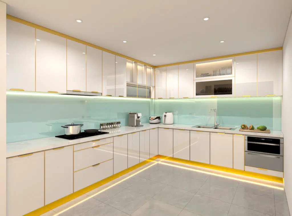 Tủ bếp chữ L: thiết kế góc, tối đa hóa diện tích.