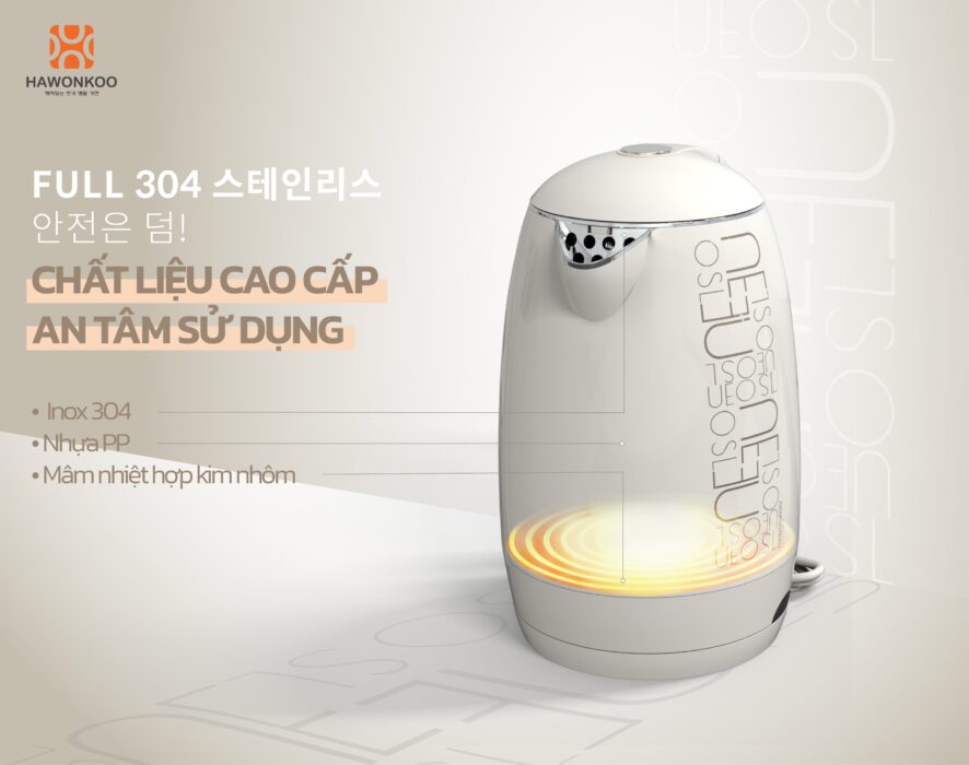 Ấm siêu tốc Hawonkoo KEH-180 được chế tạo từ vật liệu cao cấp, vừa đảm bảo hiệu quả sử dụng vừa an toàn tuyệt đối cho sức khỏe người dùng.