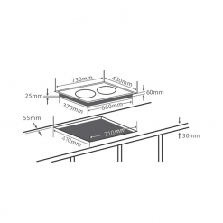 - Bếp được thiết kế đẹp mắt với phân bố khoảng cách vùng nấu khoa học, tiện dụng khi đặt nồi nấu.