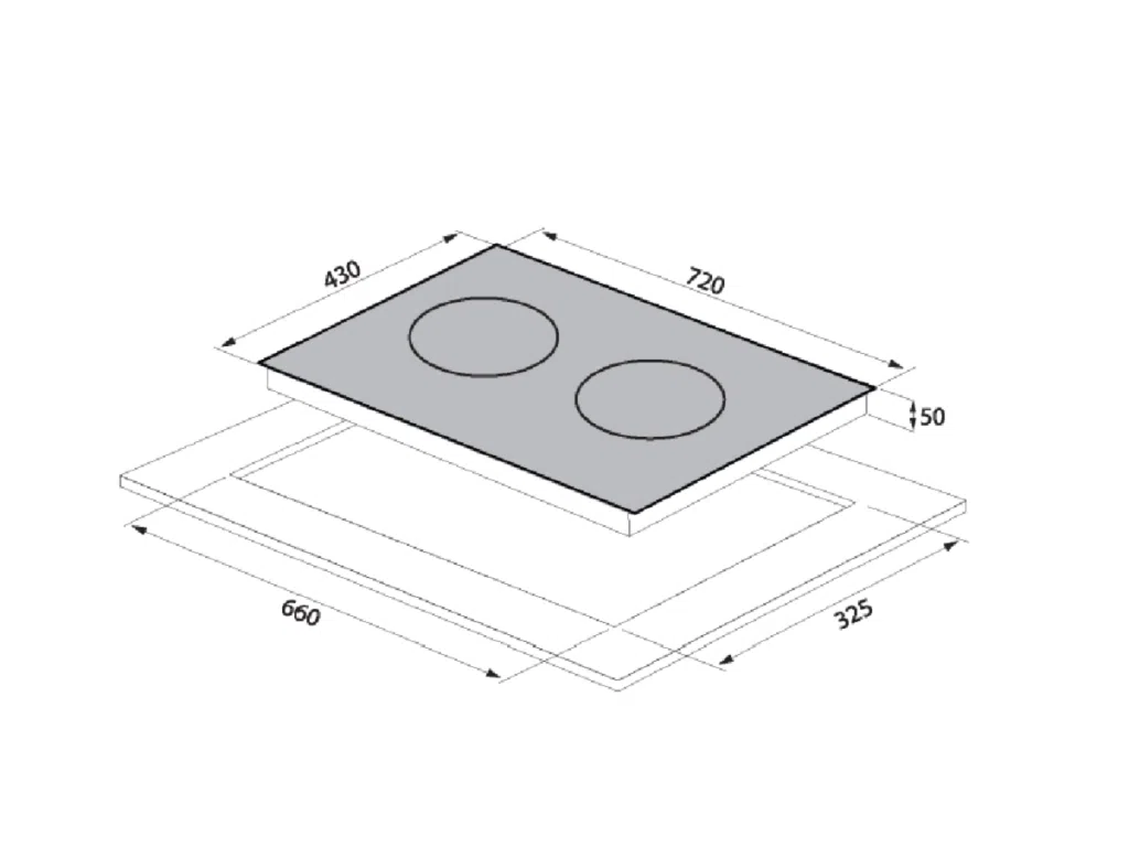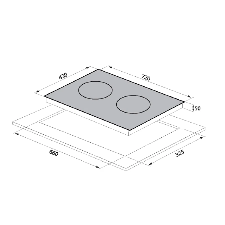 02 vùng nấu từ kích thước mỗi vùng nấu 22cm