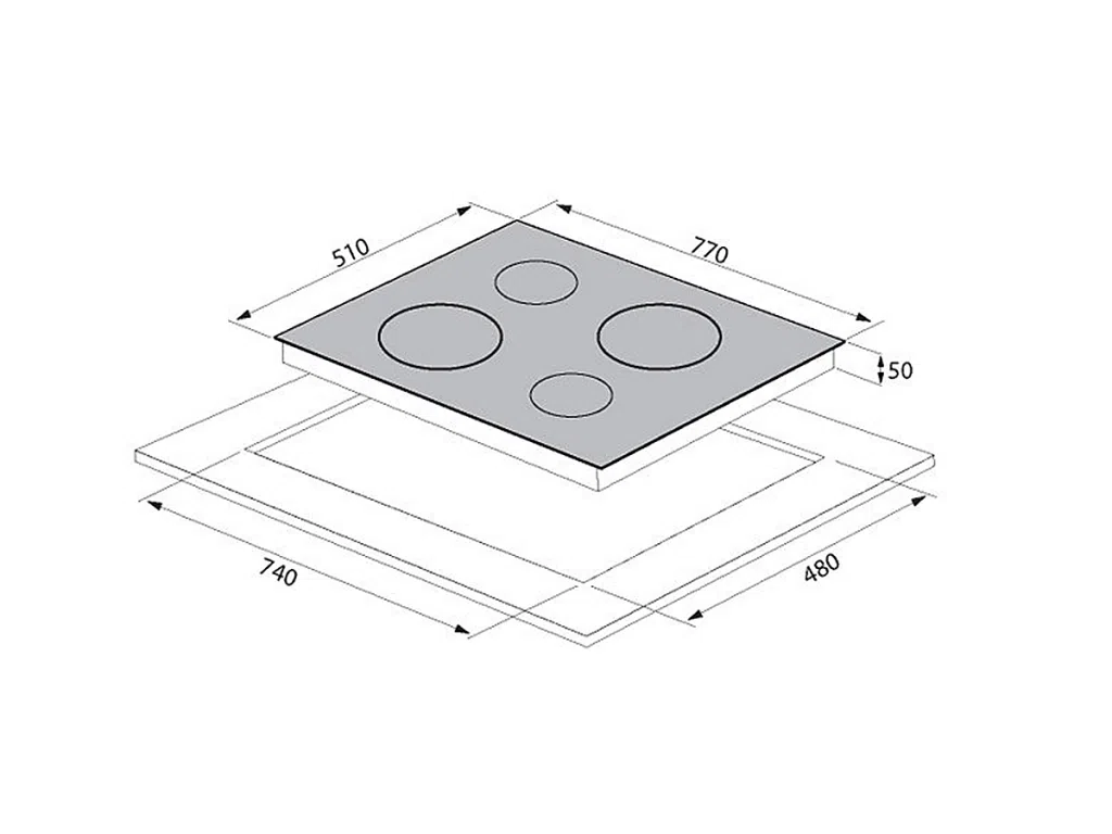 04 vùng nấu từ kích thước 2x21cm + 2x15cm