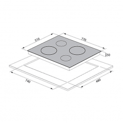 04 vùng nấu từ kích thước 2x21cm + 2x15cm