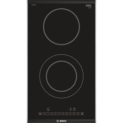 Bếp điện Domino Bosch PKF375FP2E trang bị mặt kính gốm cao cấp giúp nấu nướng và vệ sinh đặc biệt dễ dàng. Bếp mang thiết kế Comfort Profil với 2 viền trước vát tinh tế cùng cạnh bên bo viền kim loại chắc chắn. Bảng điều khiển cảm ứng DirectSelect giúp việc nấu nướng dễ dàng chỉ với những cái chạm của đầu ngón tay.