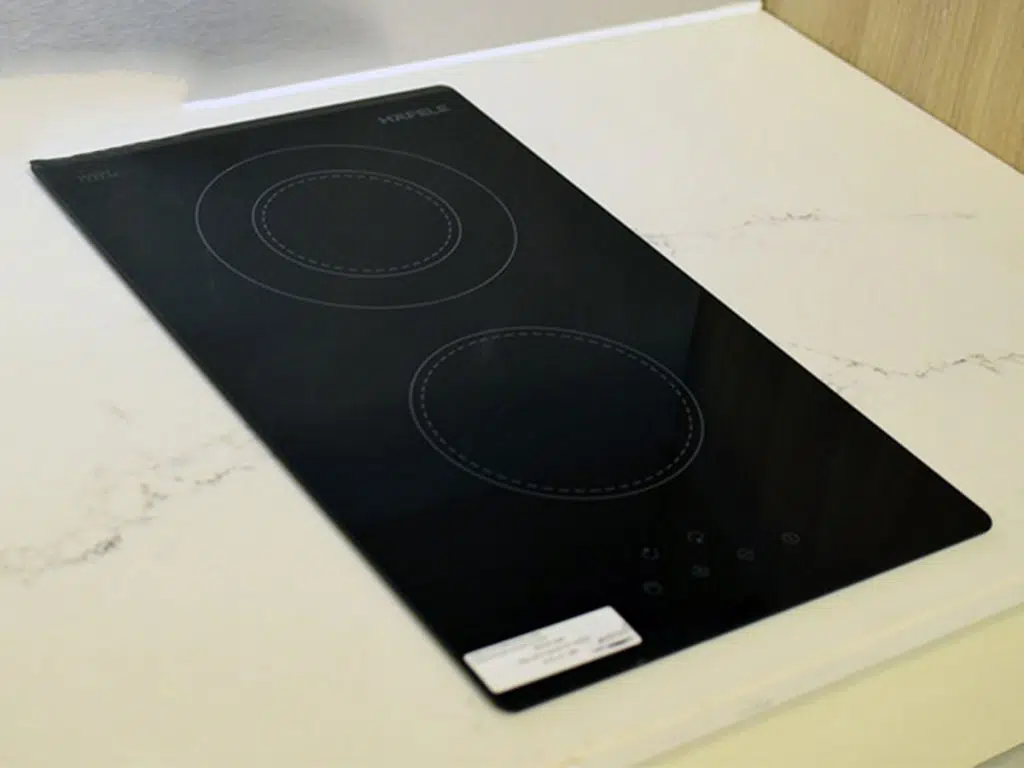 Mặt bếp điện domino Hafele HC-R302A 536.01.620 làm từ gốm thủy tinh Schott Ceran được vát 4 cạnh rất sang trọng.