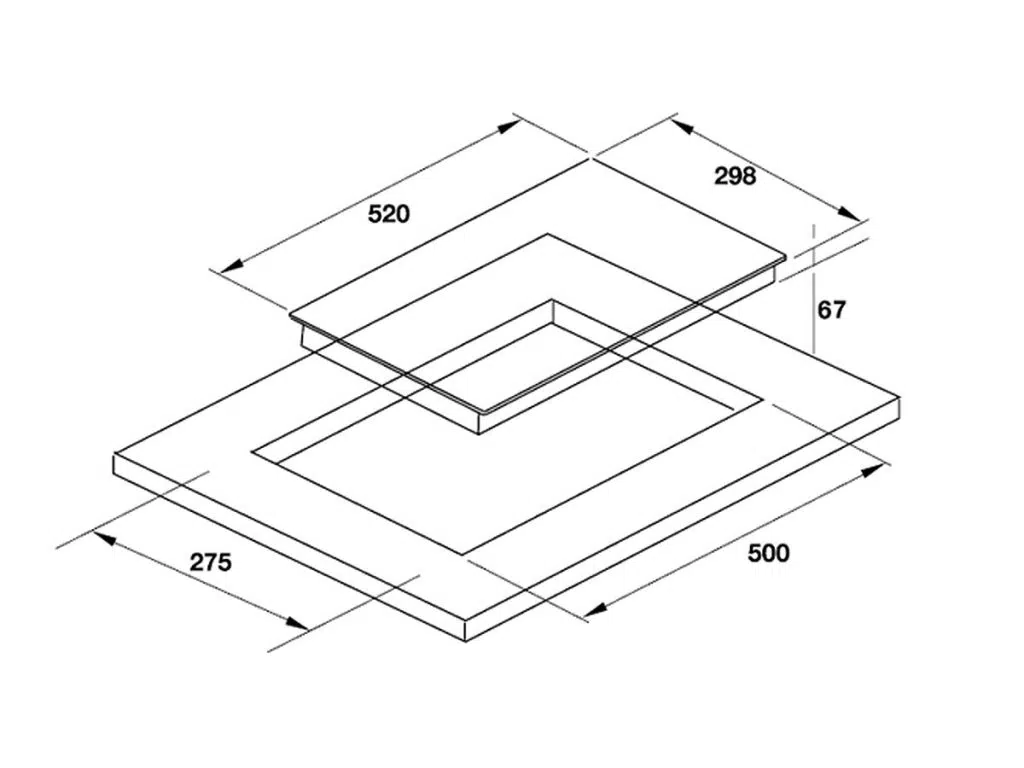 - Kích thước hộc bếp: 275R x 500S mm
