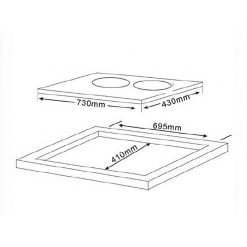 - 02 mặt bếp nấu: 01 bếp Ø 180 mm; 01 bếp Ø 210 mm