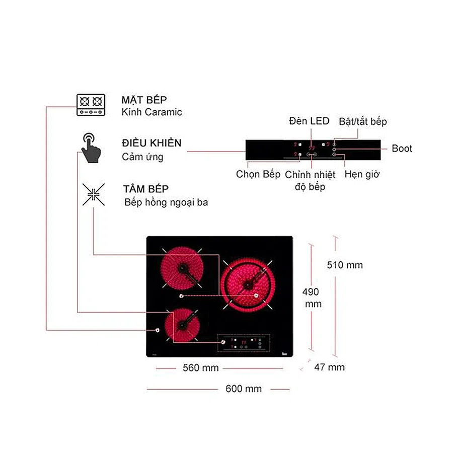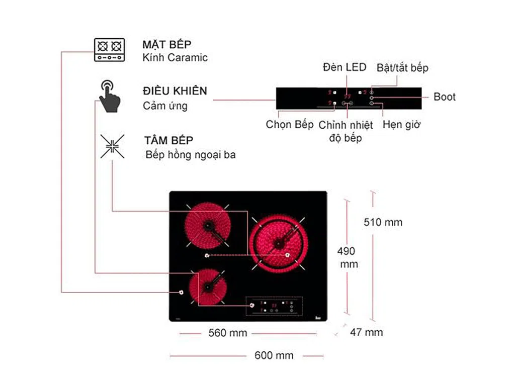 Mặt bếp hồng ngoại bằng kính Ceramic