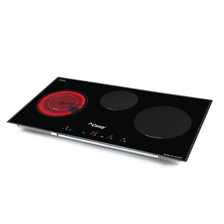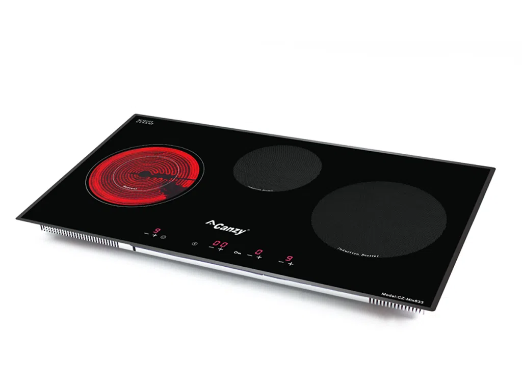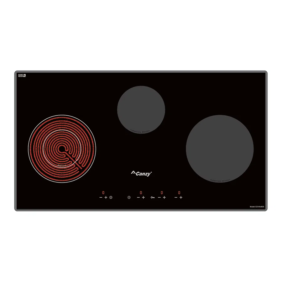 Bếp điện từ CANZY CZ MIX833 sở hữu mặt kính Schott Ceran (Đức) cao cấp, bếp được nhập nguyên chiếc 100% từ Tây Ban Nha. Sản phẩm thuộc dòng bếp từ cao cấp của thương hiệu thiết bị nhà bếp nổi tiếng CANZY.