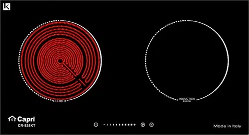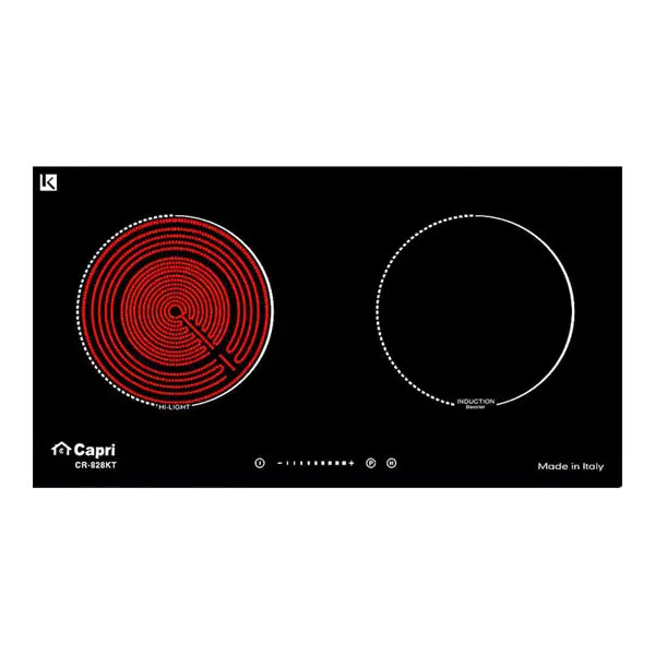 Bếp từ – hồng ngoại đôi Capri CR-828KT được thiết kế theo công nghệ hiện đại nhất trên dây truyền sản xuất công nghệ của Châu Âu.