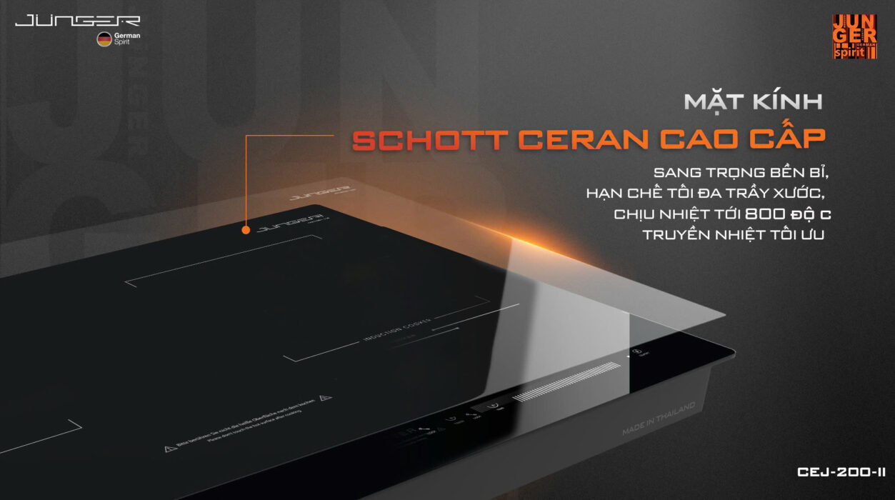 Nổi bật so với các sản phẩm cùng loại trên thị trường, Junger CEJ-200-II được trang bị mặt kính cao cấp Schott Ceran của Đức với vô vàn ưu điểm vượt trội: