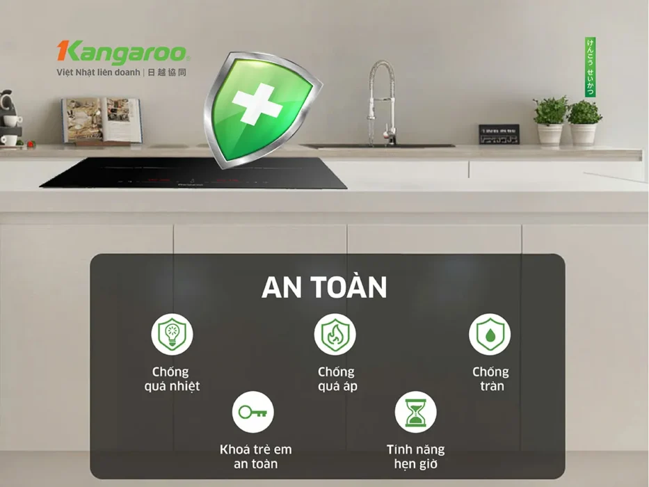 Bếp điện từ đôi Kangaroo KGIC38D1C trang bị khóa trẻ em an toàn, hệ thống chống quá nhiệt, quá áp và chống tràn tiện lợi. Khi nồi quá nóng, bếp sẽ tự động tắt. Bạn chỉ cần chờ vài phút để bếp nguội sau đó bật bếp lên và sử dụng bình thường.