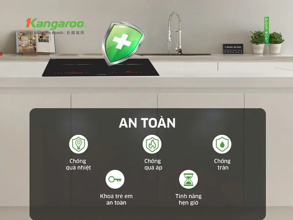 Bếp điện từ đôi Kangaroo KGIC44D1C trang bị khóa trẻ em an toàn, hệ thống chống quá nhiệt, quá áp và chống tràn tiện lợi. Khi nồi quá nóng, bếp sẽ tự động tắt. Bạn chỉ cần chờ vài phút để bếp nguội sau đó bật bếp lên và sử dụng bình thường.
