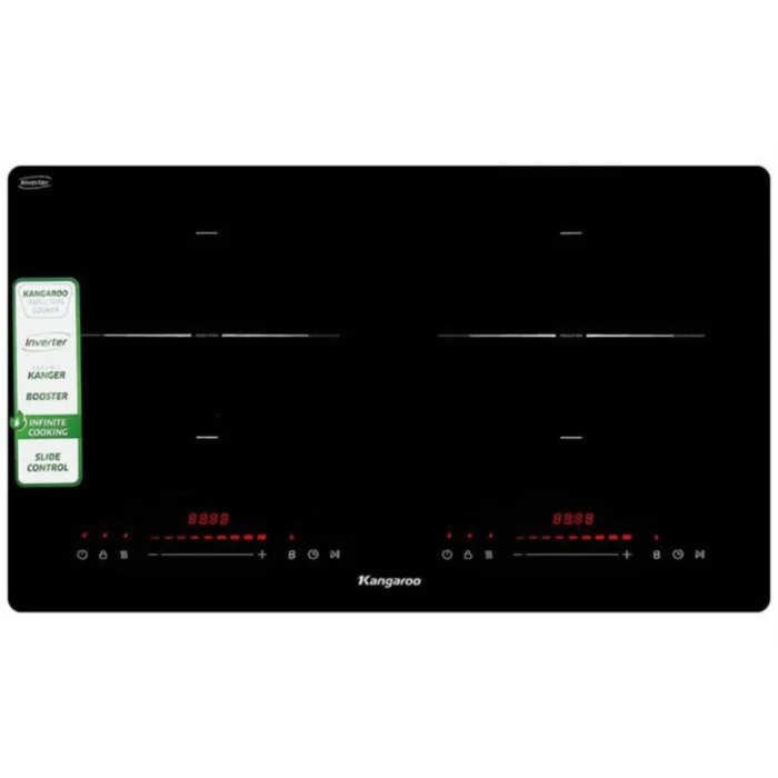 Bếp điện từ đôi Kangaroo KGIC44D1C có công suất cao, thiết kế mặt kính Ceramic Kanger cao cấp, chức năng Infinite Cooking – đun liu riu giúp nhiệt lượng tỏa đều. Ngoài ra, bếp từ Kangaroo được tích hợp các tính năng hiện đại như Inverter tiết kiệm điện, Booster gia nhiệt nhanh, công nghệ chống quá nhiệt, quá áp, chống tràn.