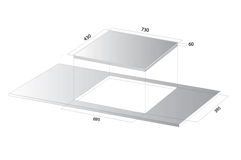 - Kích thước hộc bếp: 690 x 390 mm