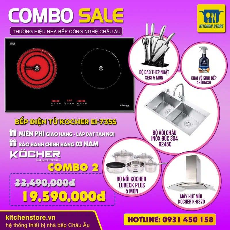 Thông tin kỹ thuật bếp điện từ đôi Kocher EI-735S