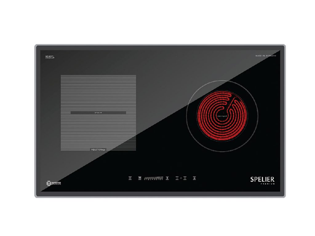 - Mặt kính SCHOTT CERAN®, Made in Germany, in hai màu độc đáo, bo viền nhôm cao cấp