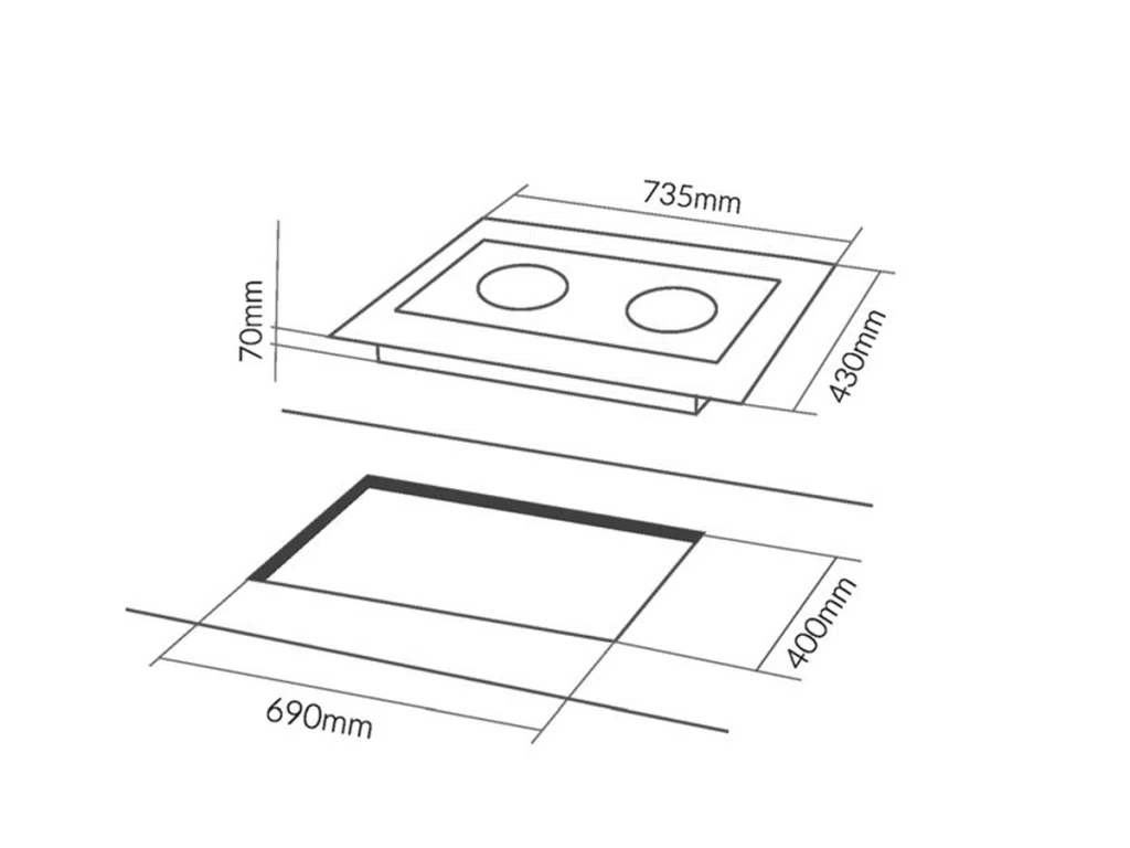 - Bếp 02 vùng nấu 01 vùng điện và 01 vùng từ.
