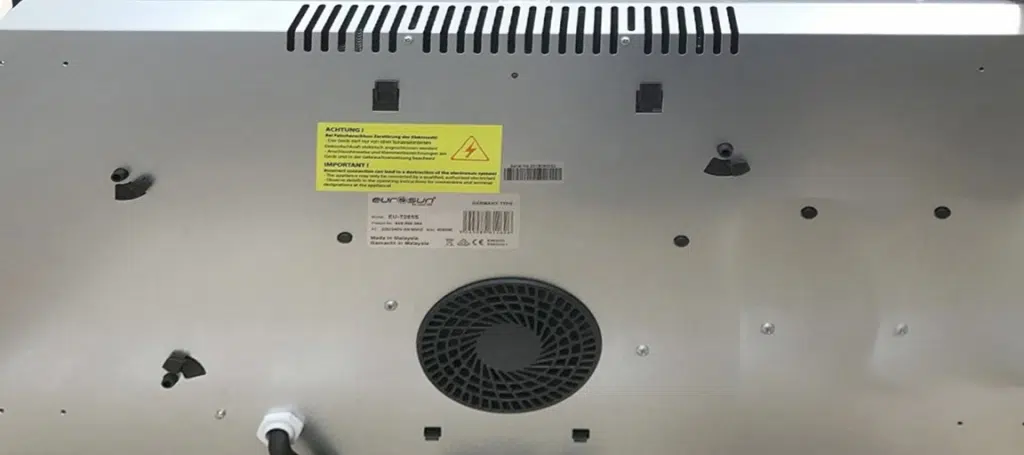 Bếp điện từ Eurosun EU-TE269S sử dụng mặt kính Euro Platium vát 4 cạnh bo viền hợp kim nhôm cao cấp, có khả năng chịu lực, chịu lực tốt. Thân bếp được làm bằng thép không gỉ, quạt tản nhiệt hoạt động linh hoạt, giúp đẩy nhanh lượng nhiệt nóng phát sinh trong quá trình nấu nướng.