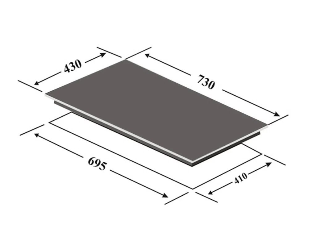 - Kích thước khoét đá: 695R x 410S mm