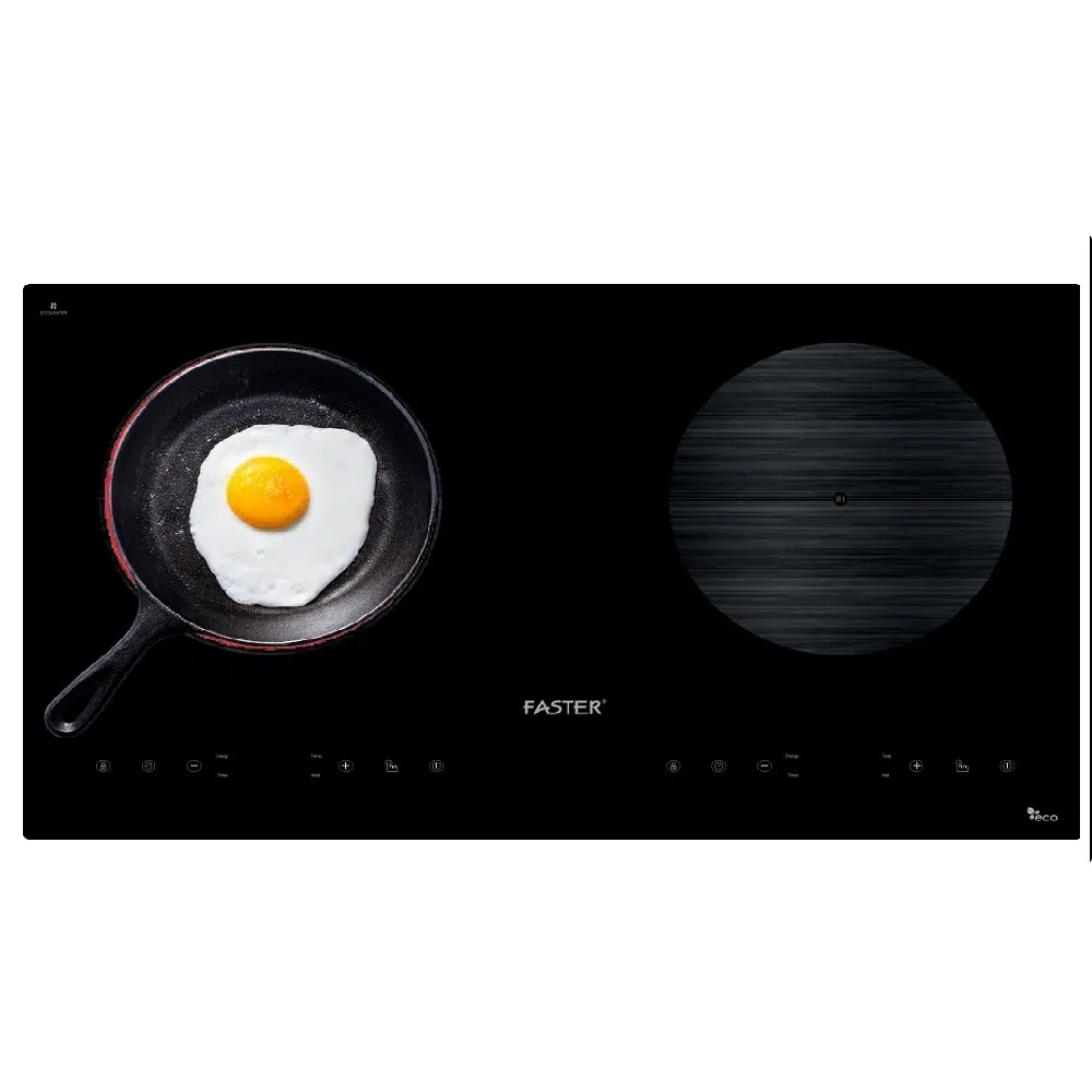 Bếp điện từ Faster FS 289HI thiết kế 2 bảng điều khiển dạng Touch Control độc lập cho từng vùng nấu cùng các tiện ích được cài đặt sẵn. Siêu nhạy, dễ dàng sử dụng và phù hợp với mọi lứa tuổi
