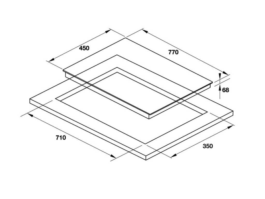 - Kích thước hộc bếp: 710R x 410S mm