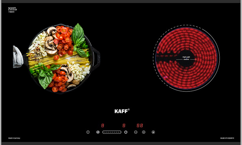 Bảo vệ quá nhiệt (cảm biến nhiệt độ tích hợp trong từng vùng nấu): Bếp điện từ Kaff KF-EG900IH được thiết kế cảm biến nhiệt độ dưới mỗi vùng nấu, khi có hiện tượng quá nhiệt ( nồi đun bị cạn, cháy,.. ) bếp sẽ chủ động ngắt công suất để đảm bảo an toàn cho thiết bị cũng như đảm bảo không sự cố đáng tiếc xảy ra.