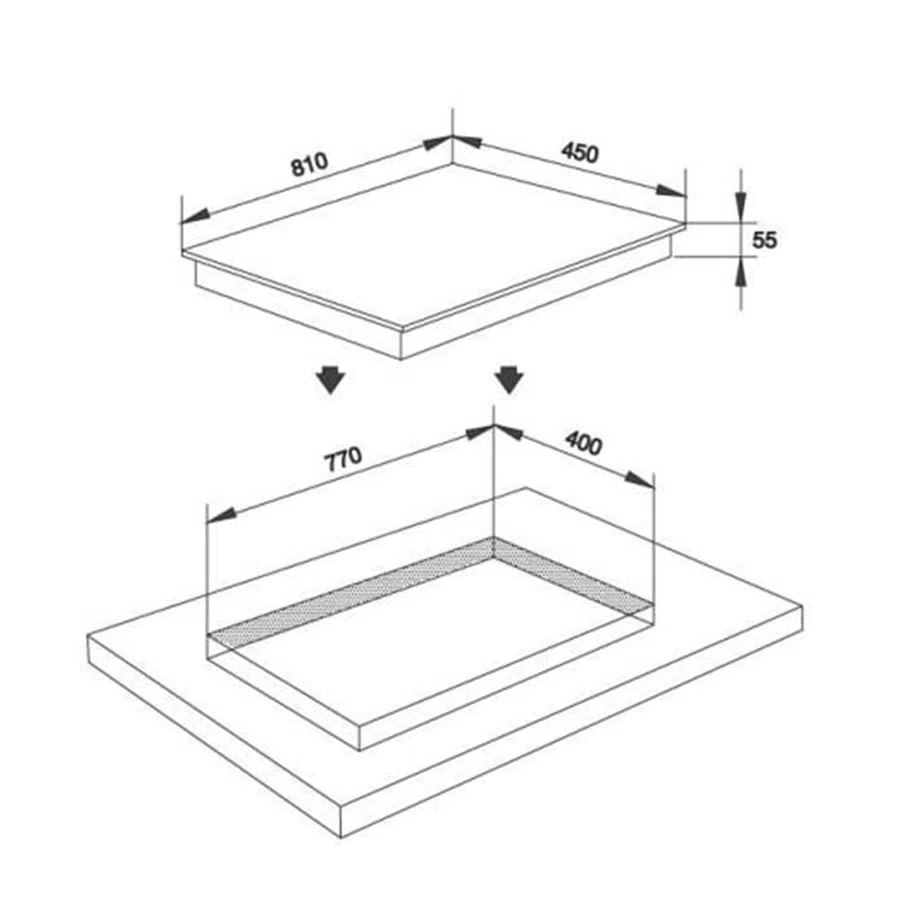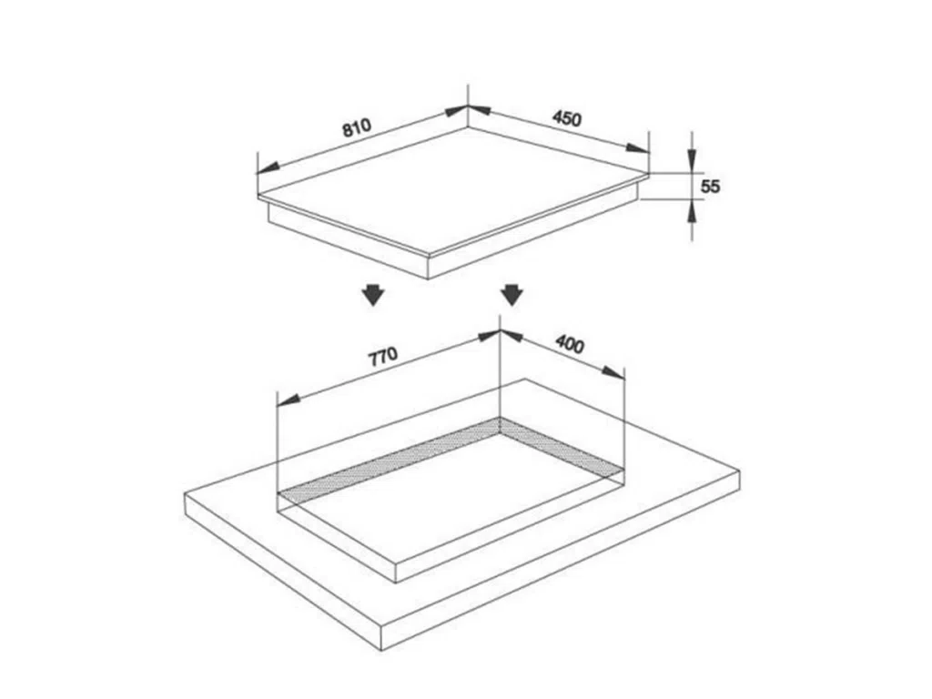 - Kích thước mặt kính: W810 x D450 x H55 mm