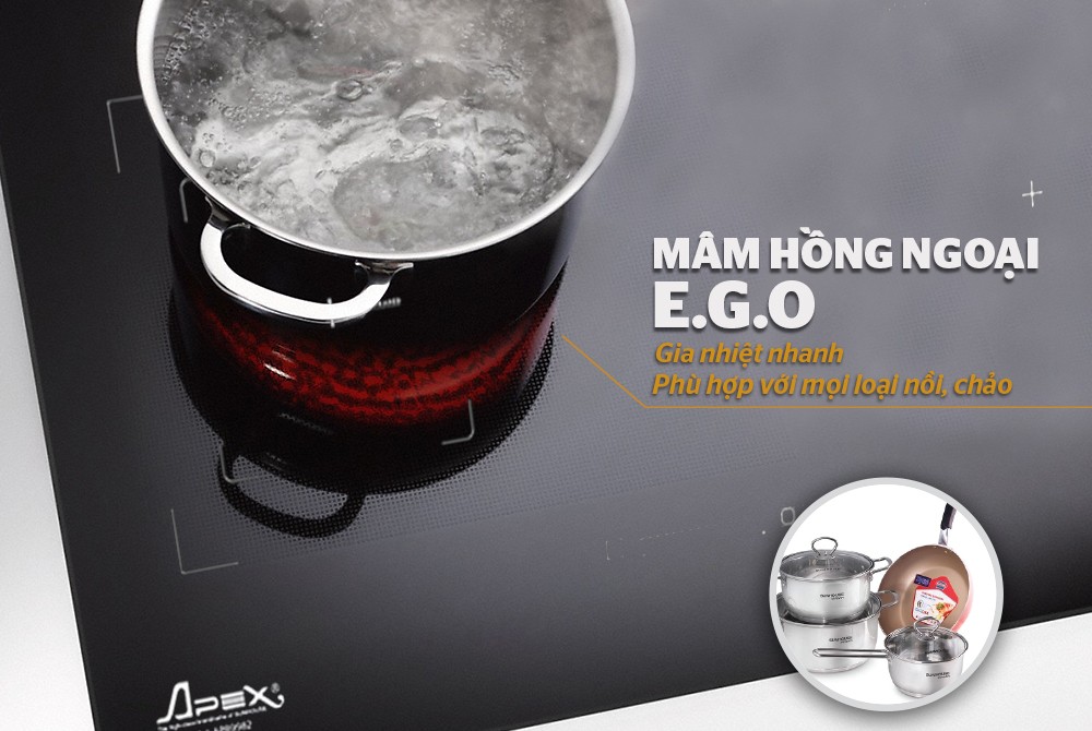 Ngoài vùng bếp từ, APB9982 còn có vùng bếp hồng ngoại, có thể sử dụng được với mọi loại nồi chảo có đáy phẳng. Vì thế, bạn sẽ tiết kiệm được chi phí đáng kể vì không phải mua thêm nồi chảo dùng riêng cho bếp từ.