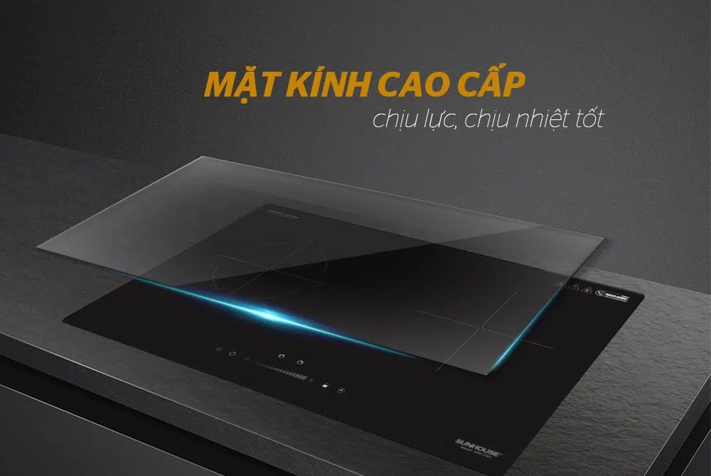 Bếp đôi điện từ hồng ngoại SUNHOUSE SHB EI02 sử dụng mặt kính siêu bền chống trầy xước tốt, có khả năng chịu lực, chịu nhiệt tốt, an toàn khi sử dụng và dễ lau chùi.