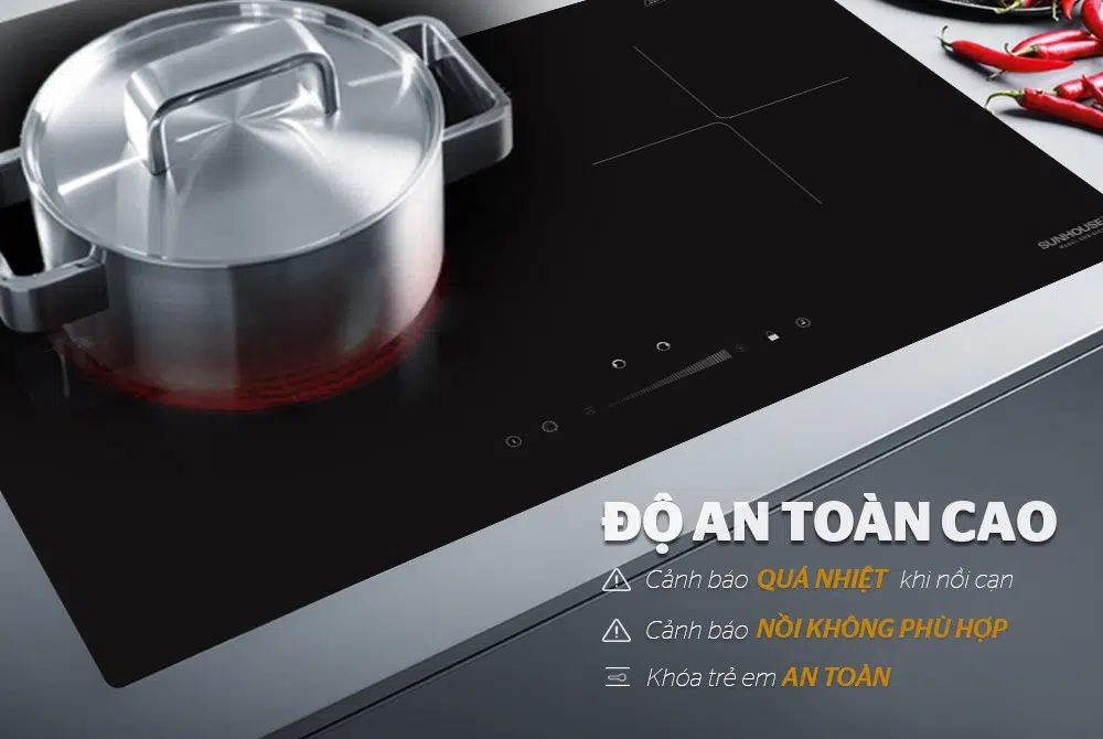 SUNHOUSE SHB EI02 được trang bị nhiều tính năng hiện đại như hẹn giờ, khóa trẻ em và tự động ngắt khi quá tải giúp đảm bảo an toàn cho người sử dụng và nâng cao độ bền cho bếp.