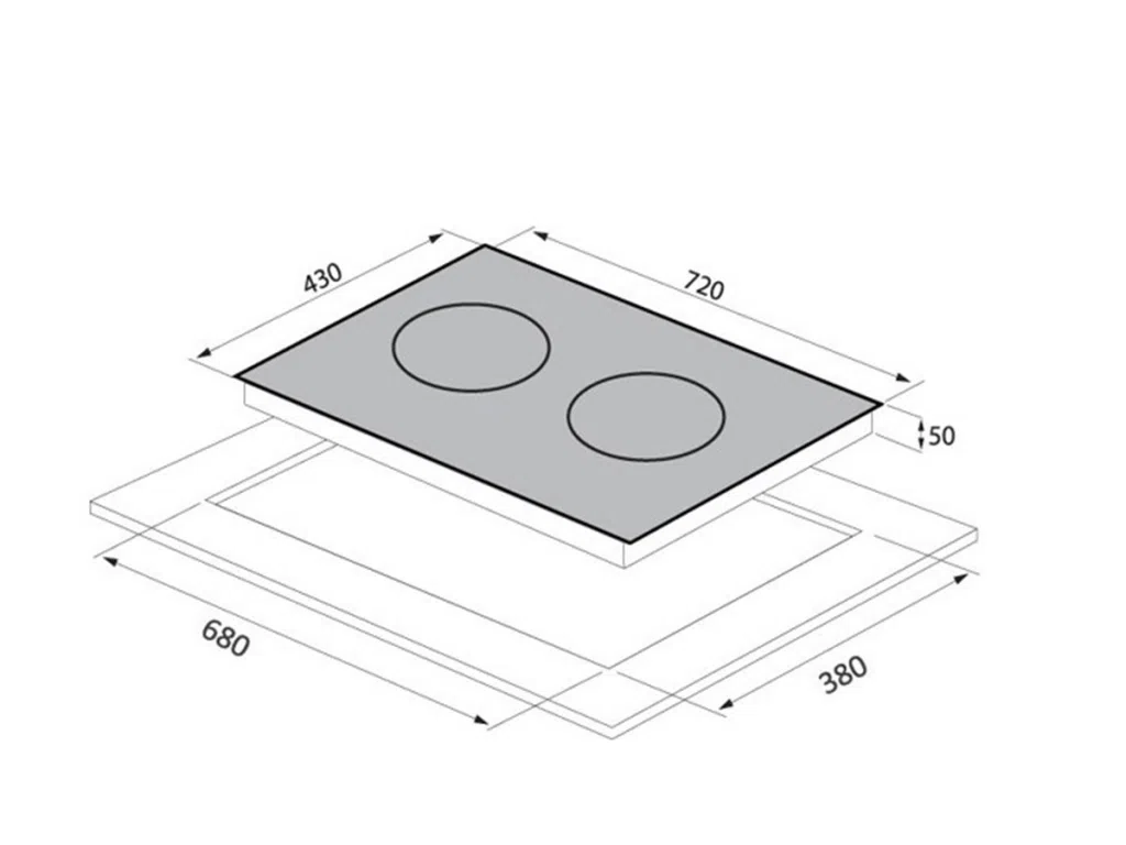 Kích thước bếp: 720x430x50mmMặt kính NEG tản nhiệt nhanh, chịu sốc nhiệt đến 800 độ C