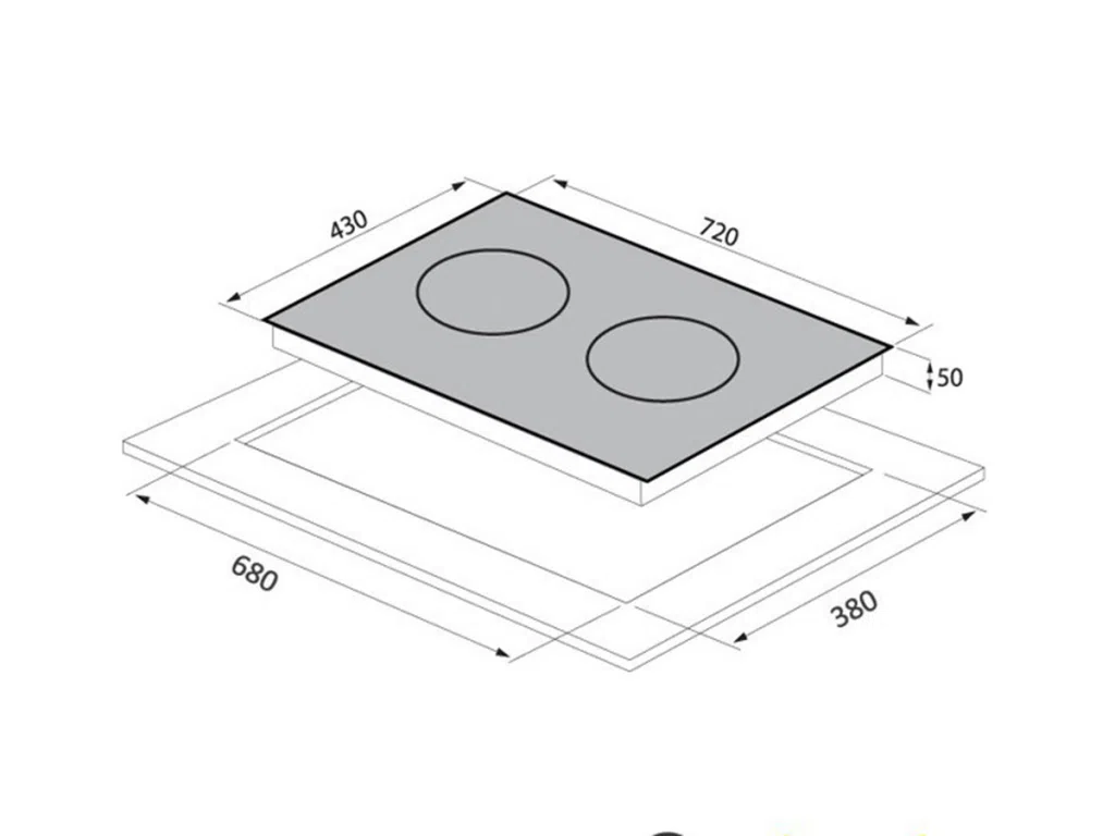 - Bếp gồm 1 vùng nấu từ 220mm, và vùng nấu điện hi-light 220mm