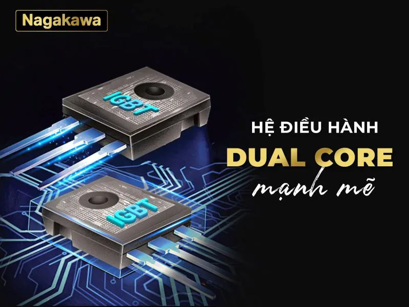 Hệ điều hành Dual Core là ưu điểm vượt trội của bếp đôi điện từ Nagakawa NK2C01M, mang đến trải nghiệm nấu nướng vượt trội:
