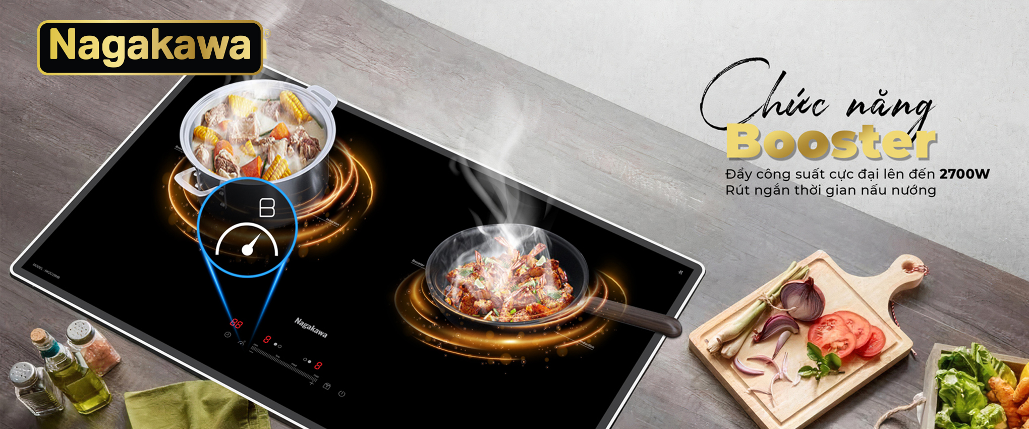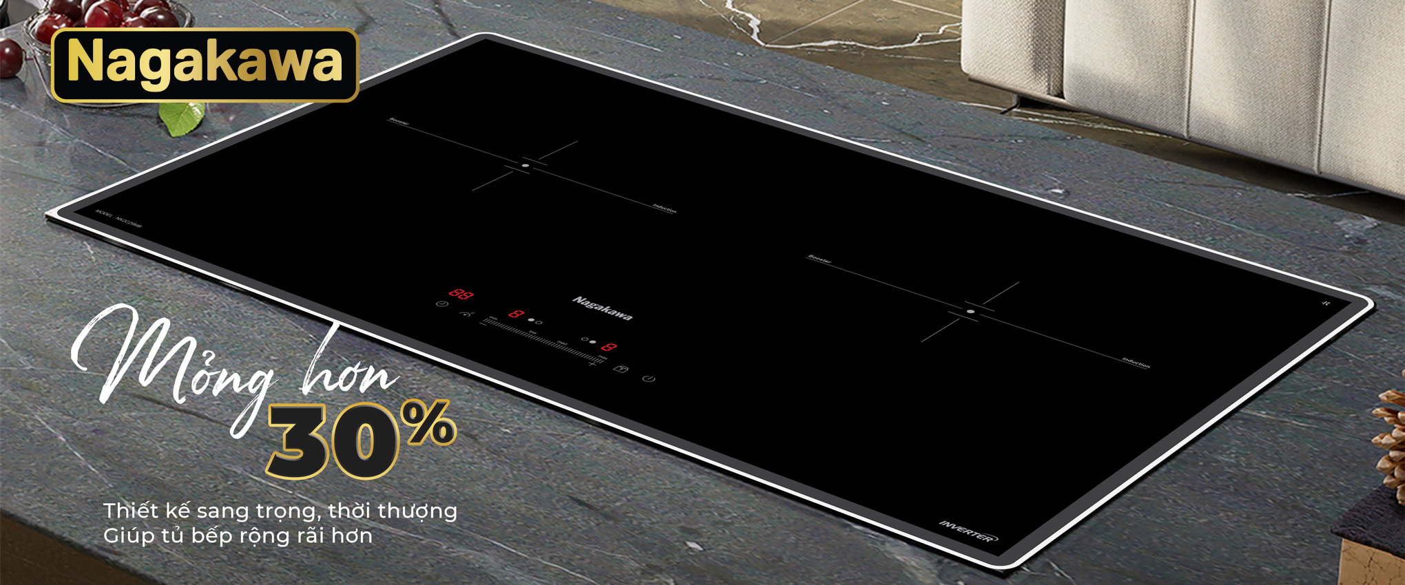 Tiên phong phong cách thiết kế 4.0, Bếp đôi điện từ Nagakawa UltraSlim NK2C29MB có độ dày chỉ 58mm – mỏng hơn 30% so với các sản phẩm bếp từ thông thường. Giờ đây, căn bếp không chỉ được “giải phóng” diện tích tối đa mà còn trở nên sang trọng hơn, hiện đại hơn, khơi nguồn cảm hứng bất tận cho vạn món ngon ra đời.