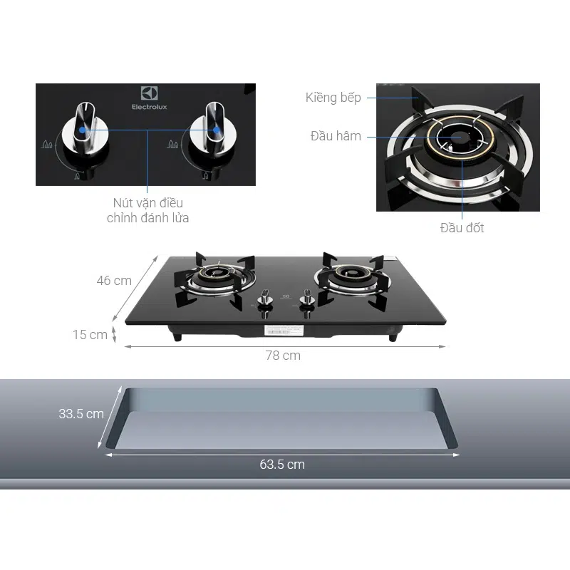 Dòng bếp gas Electrolux này được trang bị bề mặt kính trợ lực chống trầy xước, giúp bạn vệ sinh bếp dễ dàng tiện lợi.