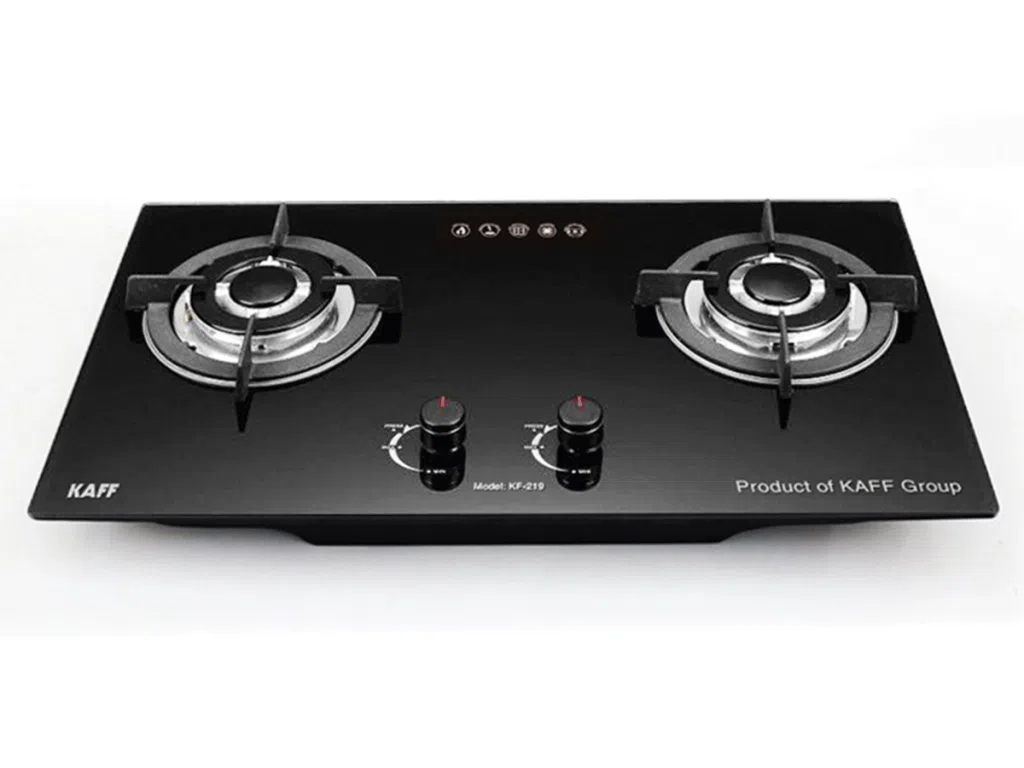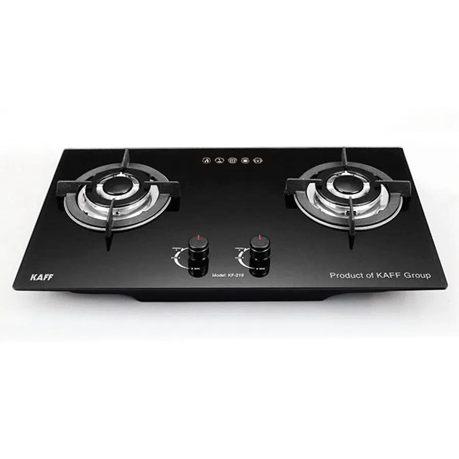 - Bếp gas âm 2 lò KAFF KF-219 sử dụng Bộ chia lửa bằng đồng tiết kiệm gas, thiết kế tinh xảo. Mâm cho ngọn lửa xanh, đẹp mắt.