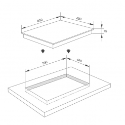 - Kích thước lỗ đá: W790 x D440mm