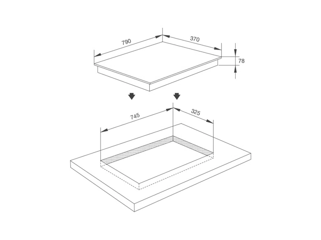 - Kích thước lỗ đá: W745 x D325mm