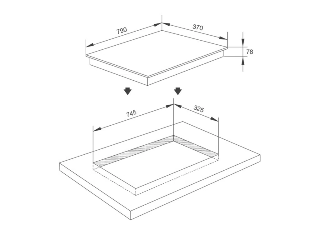 - Kích thước bếp: W790 x D370 x H78mm