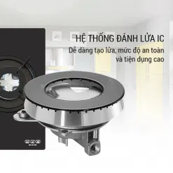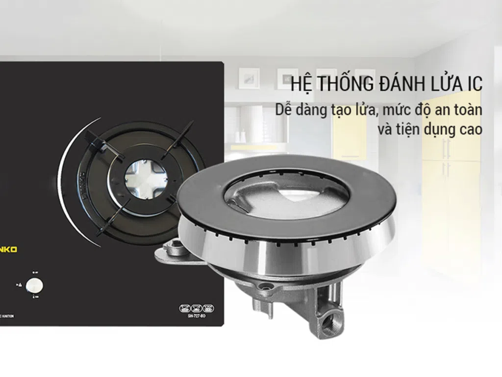 Bếp gas âm Sanko SH 727 BD đánh lửa bằng pin an toàn và nhanh chóng.