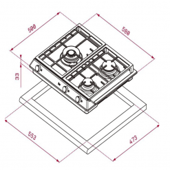 Thông số của bếp gas âm 3 vùng nấu TeKa EX 6 0.1 3G