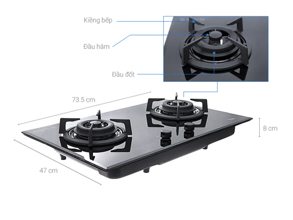 - 02 mặt bếp nấu: mỗi bếp 4,6 kW