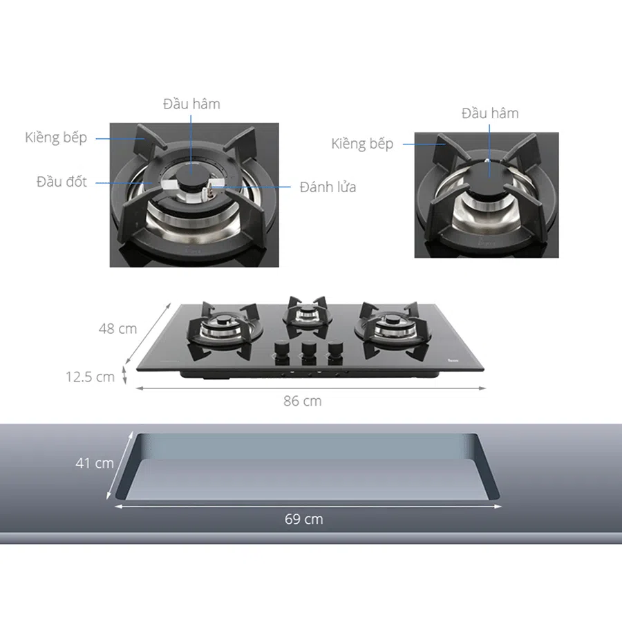 Thông số của bếp gas âm GT LUX 86 3G AI AL