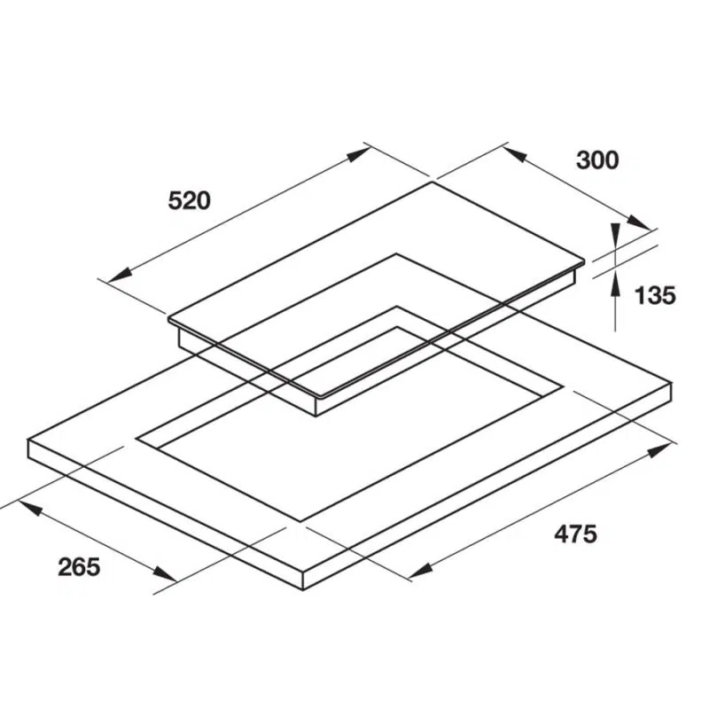 - Kích thước sản phẩm: 300R x 520S x 135C mm