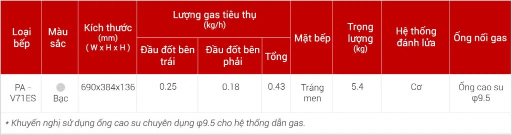 Bếp gas dương Paloma PA-V71ES
