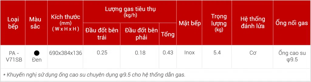 Bếp gas dương Paloma PA-V71SB
